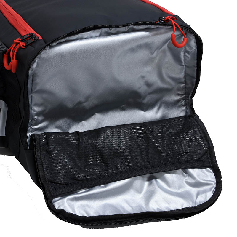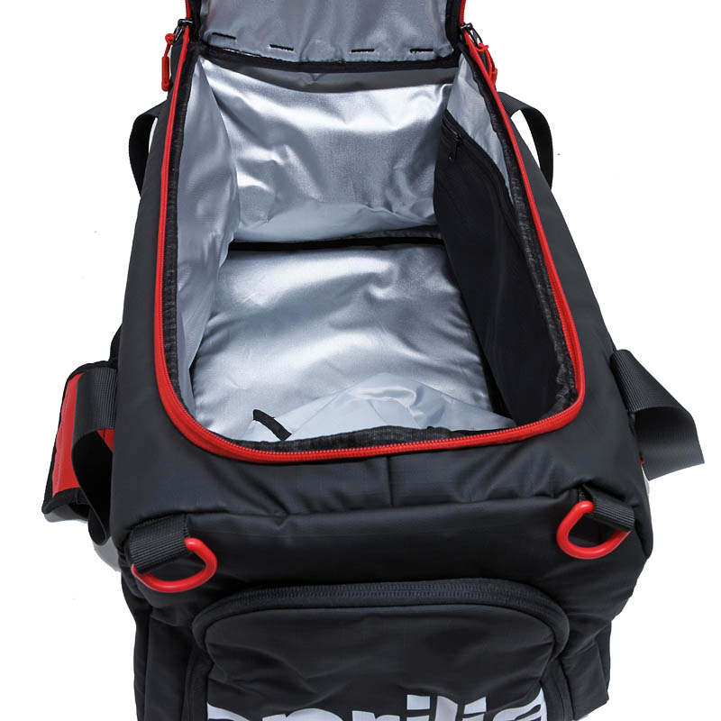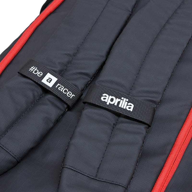 内部にメッシュのオープンポケット、靴用ポケット、取り外し可能なストラップを備えたダッフルバッグです。apriliaロゴが全周に施され、アルミ製の内張りが高級感を添えています。前面ポケットでアクセスしやすく、バックパックへの変換も可能。多機能でなおかつ軽量、機能性豊かな設計となっています。